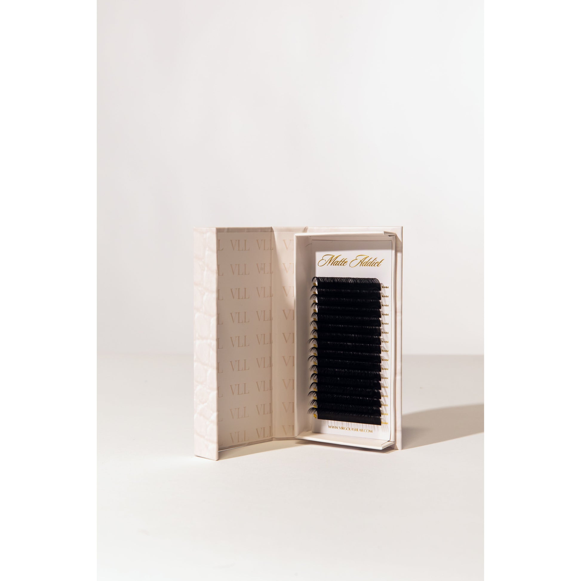 Elevate your lash game with our Matte Collection! Our luxurious lash extensions provide an extremely dark appearance and fan-like butter, making them perfect for both beginners and advanced artists. The super sticky foil back ensures the strip will not come off your lash tile easily, making them so easy to work with. While the 16 rows of pure luxury fibers give a soft and natural yet bold dark look. 100% cruelty-free and made with faux mink matte fibers.